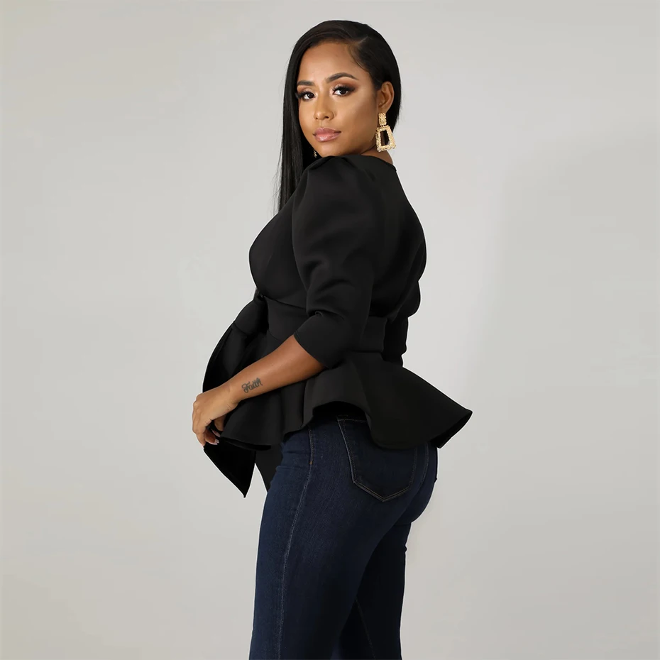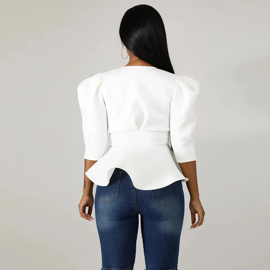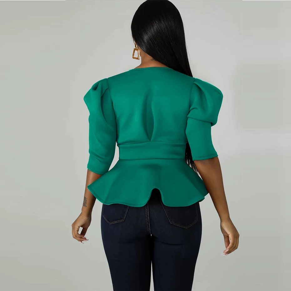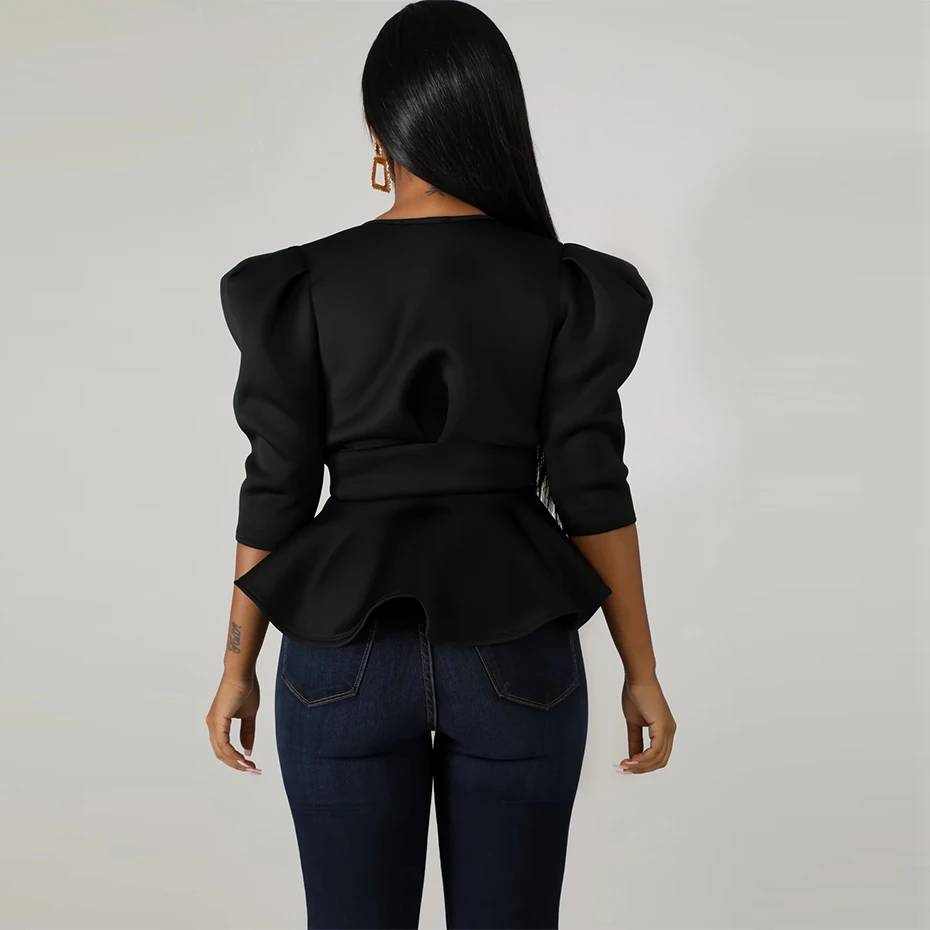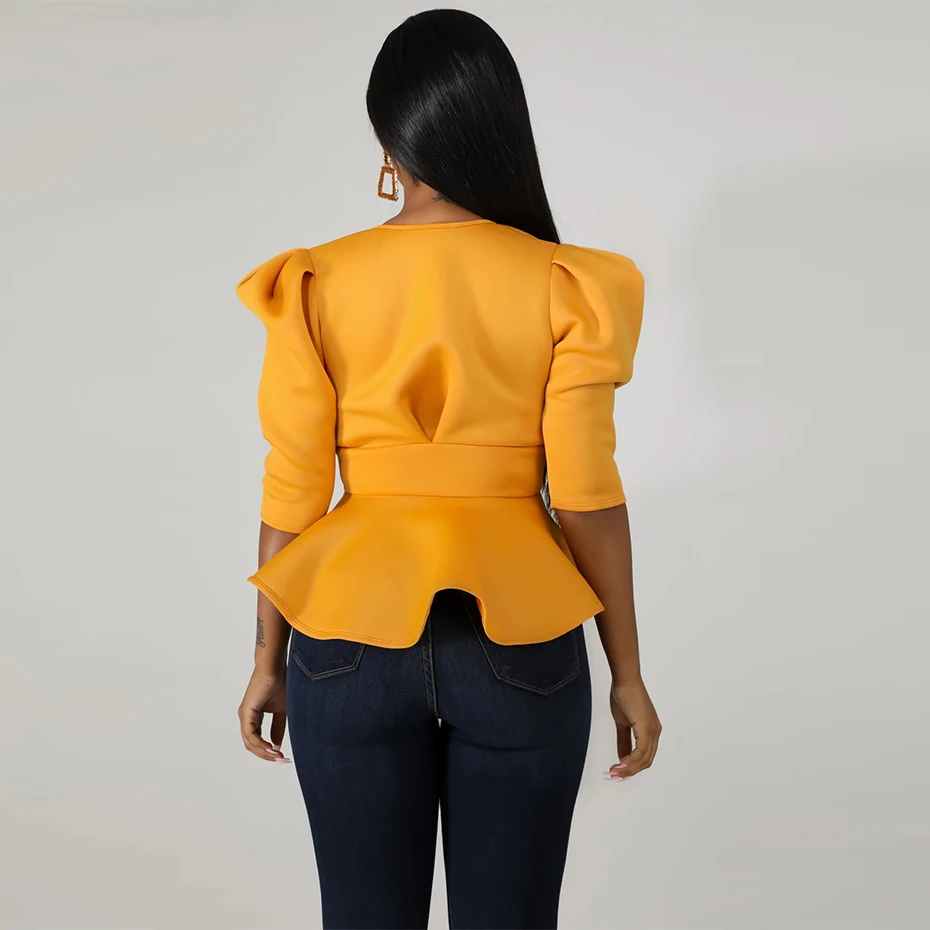 HAOYUAN Plus Size Womens Tops and Blouses 2019 Autumn Sexy Clothes V Neck Tie Up Tunic Half Sleeve Blusas Fashion Ruffle Blouse