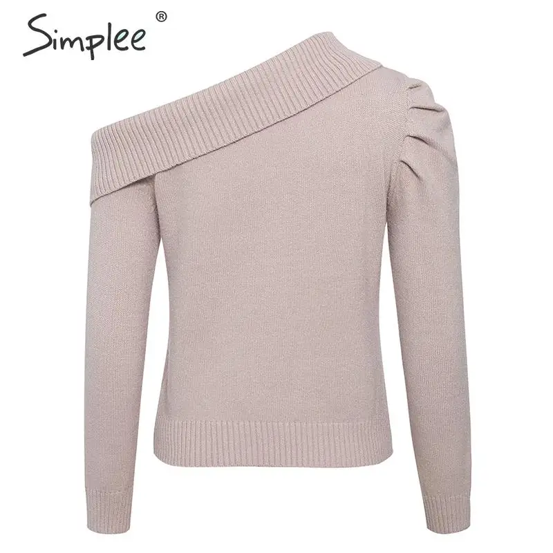 New Boat Neck Style Off Shoulder Long Sleeve Sweater